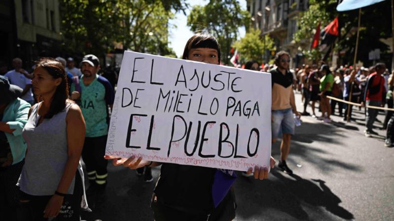 Es la tercera protesta masiva contra el presidente y el primer paro que la principal central sindical del país convoca en cinco años: la última fue en 2019 durante el Gobierno del conservador Mauricio Macri. La huelga es una medida de rechazo contra las medidas que el Gobierno de Milei impuso desde que llegó a la Casa Rosada. Al fuerte ajuste que el ministro de Economía, Luis Caputo, anunció a los pocos días de asumir el cargo, con una devaluación de la moneda del 50% y la quita de subsidios a la energía y el transporte, se sumaron después dos medidas de enormes dimensiones. La primera fue un megadecreto que está en vigor, pero que es cuestionado en la justicia por quienes lo consideran “inconstitucional” —un tribunal ya suspendió la reforma laboral incluida en el decreto—. Después, el presidente envió al Congreso un proyecto de ley con más de 600 artículos que será votado en el Congreso en sesiones extraordinarias.