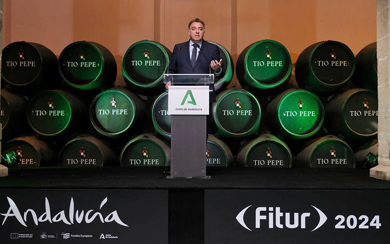 El consejero de Turismo, acompañado en el acto por la alcaldesa de Jerez, María José García Pelayo, y la presidenta de la Diputación de Cádiz, Almudena Martínez, ha señalado que serán «cinco días intensos», en los que Andalucía difundirá «una oferta sólida, unida y rompedora, que va a sorprender desde el inicio a profesionales y público».