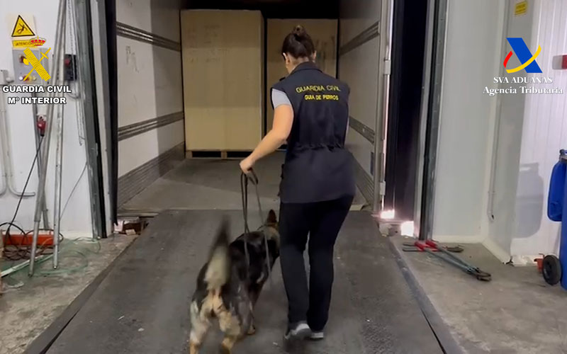 La intervención ha tenido lugar en la zona de cabotaje, donde el camión fue marcado como sospechoso por una Guardia Civil del grupo cinológico con su perro detector de droga, tras lo cual se inició la inspección del vehículo. Fue entonces cuando los agentes realizaron la apertura del remolque del camión que, según la documentación presentada por el conductor, transportaba melones con destino Perpiñán.