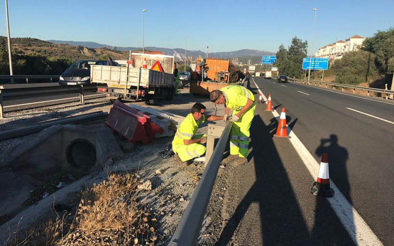 - Vía de servicio Sotogrande – Parque Nacional Guadiaro entre los PP.KK. 1.092+500 (132+500) y 1.094+100 (130+900).