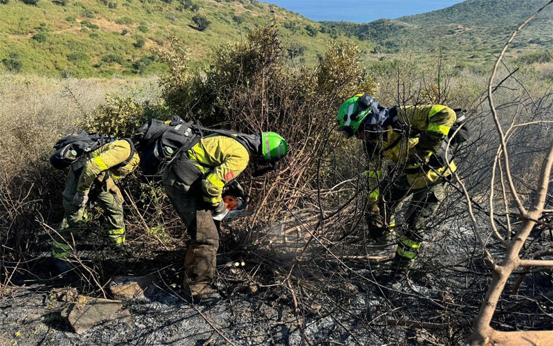 Por tierra, combate el fuego, aproximadamente, un centenar de bomberos forestales, tras la incorporación de 25 efectivos en los últimos minutos, seis técnicos de operaciones, un agente medioambiental, un técnico de extinción y dos vehículos autobomba, además de una Unidad Móvil de Meteorología y Transmisiones, una Unidad Avanzada de Análisis y Seguimiento de Incendios y una Unidad Médica de Incendios Forestales.