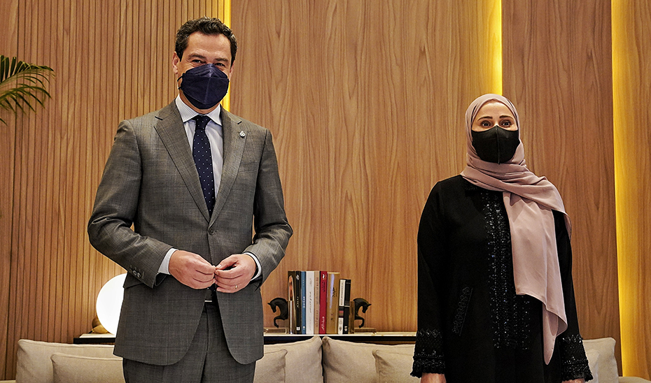 El presidente de la Junta, Moreno Bonilla, en el marco de una reunión mantenida en Dubái con la ministra de Estado para el Desarrollo Gubernamental y el Futuro de los Emiratos Árabes Unidos, Ohood Khalfan Al Roumi, ha planteado la posibilidad de que el país cuente con un consulado en Andalucía, una comunidad española que es una gran oportunidad para la inversión por su «estabilidad política».