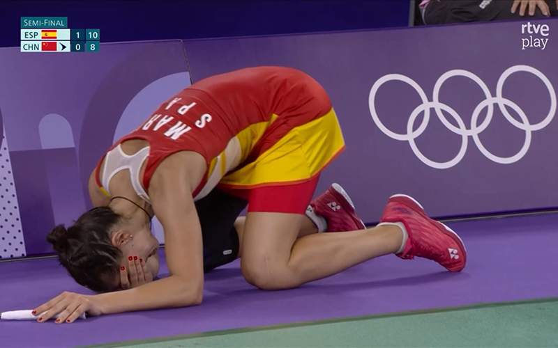 La jugadora onubense de bádminton, Carolina Marín, se ha lesionado durante su partido de semifinales de los Juegos Olímpicos de París ante la china He Bing Jiao y ha tenido que retirarse del torneo, todo en un partido que dominaba a placer (21-14, 10-6) y en el que la rodilla volvió a despertar sus pesadillas. Una vez más, una lesión aparta a la onubense de la gloria olímpica, toda vez que ya tuvo una grave lesión a dos meses de los Juegos Olímpicos de Tokio.