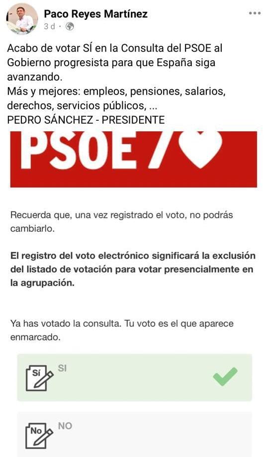 El jienense Francisco Reyes, al frente del que sigue siendo el feudo del socialismo andaluz, habría optado por el voto online. También lo hicieron otros dirigentes provinciales como el granadino José Entrena, el gaditano Juan Carlos Ruiz Boix y el sevillano Javier Fernández.