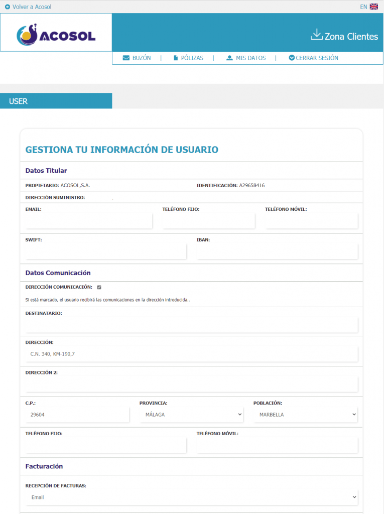 “Seguir apostando por una gestión eficiente y cercana” , con esas palabras el consejero delegado general, Carlos Cañavate, ha dado a conocer “las mejoras necesarias para atender a nuestros clientes con los nuevos sistemas implementados por la COVID-19 y que cuenta desde ahora con una nueva versión del servicio de oficina virtual a través del cual, y una vez se registre como usuario, se podrán realizar tareas cotidianas como el cambio de las domiciliaciones bancarias a tiempo real o el cambio de datos”. Además, ha resaltado que gracias a estas mejoras, desde Acosol proporcionamos a los abonados un canal de gestión en tiempo real para que puedan llevar a cabo todas las operaciones relativas a su contrato, por lo que, no tendrán la necesidad de acudir físicamente a nuestras oficinas; en definitiva, hemos pretendido facilitar telemáticamente todas estos servicios y estar en contacto con los ciudadanos que han necesitan realizar cualquier consulta o trámite”.