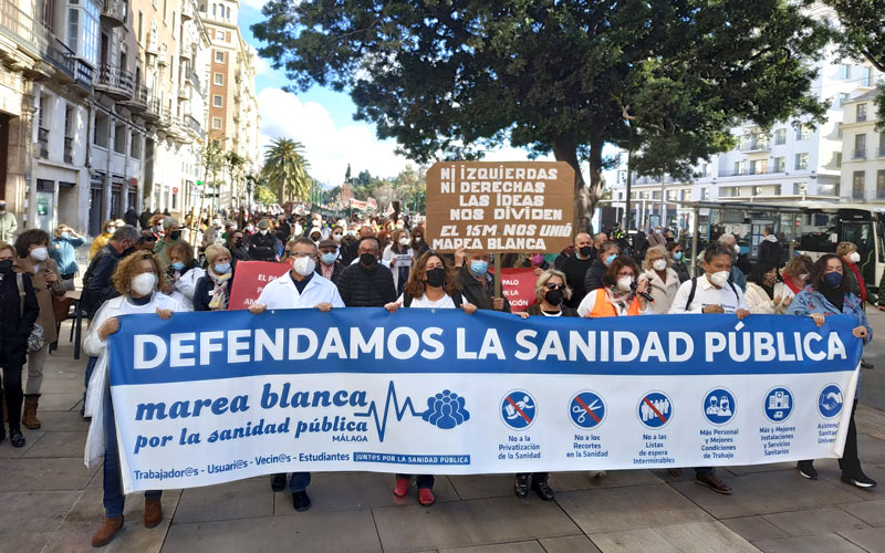 La ciudad de Málaga ha acogido en la mañana de este sábado una manifestación convocada por la Marea Blanca por la Sanidad Pública, en el que han criticado el «desmantelamiento» del sistema sanitario andaluz. Unas cuatrocientas personas se han citado por las calles de la capital malagueña.