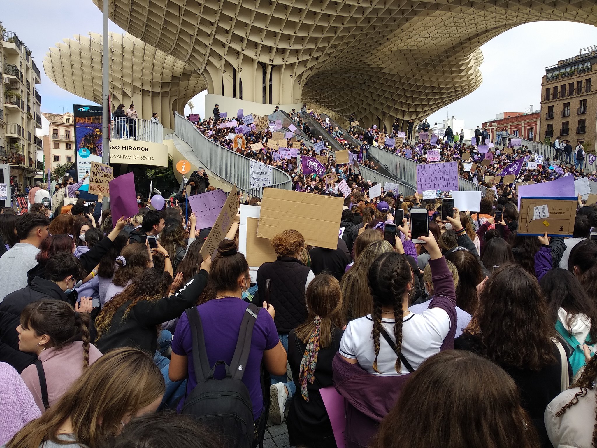 Así, en la capital hispalense el Movimiento Feminista de Sevilla ha convocado la manifestación ‘La lucha de las mujeres. Por un mundo feminista’, que ha partido de Plaza Nueva. Mientras, la Asamblea Feminista Unitaria Sevilla ha celebrado otra desde Torre Pelli al Palacio de San Telmo que ha reunido a «unas 3.000 personas», según Subdelegación del Gobierno. Esta plataforma ha protagonizado también una concentración en el Parlamento y una manifestación de estudiantes que ha discurrido entre Plaza Nueva y Las Setas esta mañana, acciones que han convocado «a alrededor de 1.300 personas», según estas mimas fuentes.