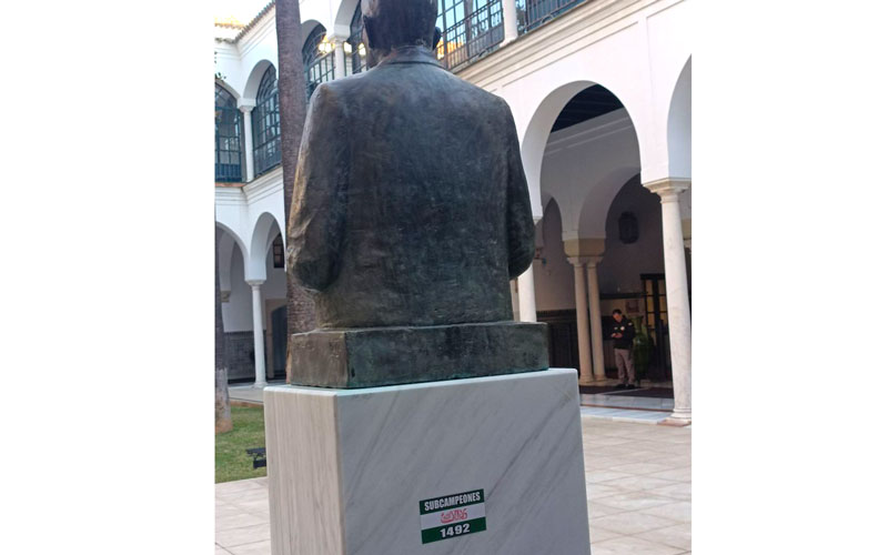 El Parlamento investiga la colocación de una pegatina en el busto de Blas Infante denunciada como «acto vandálico»
