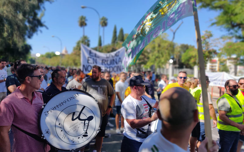 La protesta arrancaba a las 9,30 horas de la Escuela Superior de Ingeniería (ETSI) de Sevilla, desde donde los taxistas se desplazaron hasta el Parlamento. Portaban tambores, pitos y pancartas en las que anunciaban que el taxi «no se rinde», en esta ocasión ante el proyecto normativo, que según anunciaba esta semana Fomento habilitará a los VTC para que sigan operando en los núcleos urbanos a partir del 1 de octubre, si bien se establecerán requisitos para que estas medidas garanticen «la convivencia» y ofrezcan «el mejor servicio al ciudadano».
