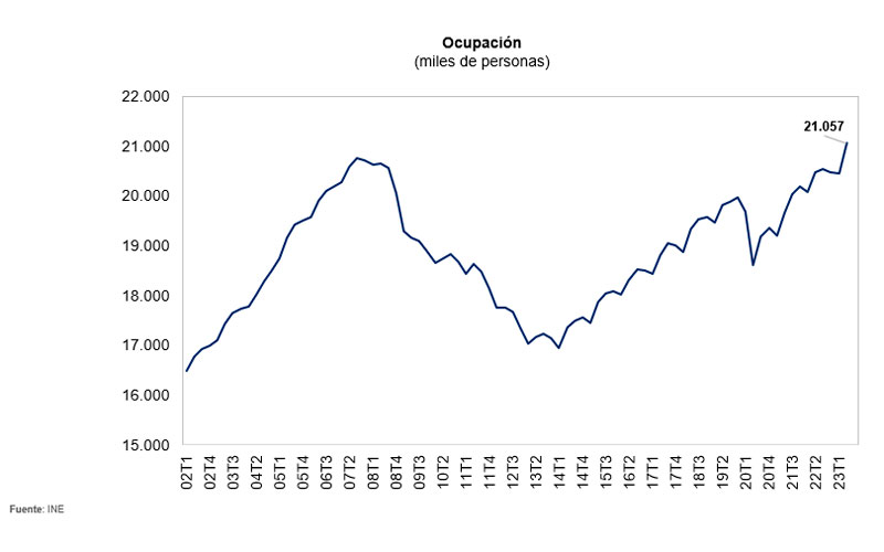 El dinamismo económico ha permitido crear 600.000 puestos de trabajo en 3 meses, superándose 21M de personas ocupadas en España