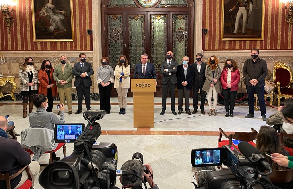 Juan Espadas ha celebrado este martes una rueda de prensa tras una reunión con el Grupo socialista del Ayuntamiento hispalense, después de que este pasado lunes el pleno aprobase inicialmente el presupuesto de 2022, con los votos a favor de los socialistas y los ediles de Adelante y el voto contrario de PP, Cs y Vox. El ya líder de los socialistas andaluces había vinculado esta aprobación del nuevo presupuesto a su renuncia a la Alcaldía.