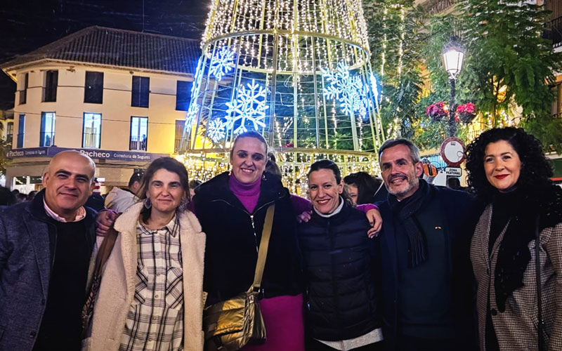 Ha sido con el encendido de todas las calles y plazas que se iluminaron en la localidad a partir de las siete de la tarde. El alcalde de Sanlúcar la Mayor, Raúl Castilla, presidió el momento junto a una representación de este colectivo.