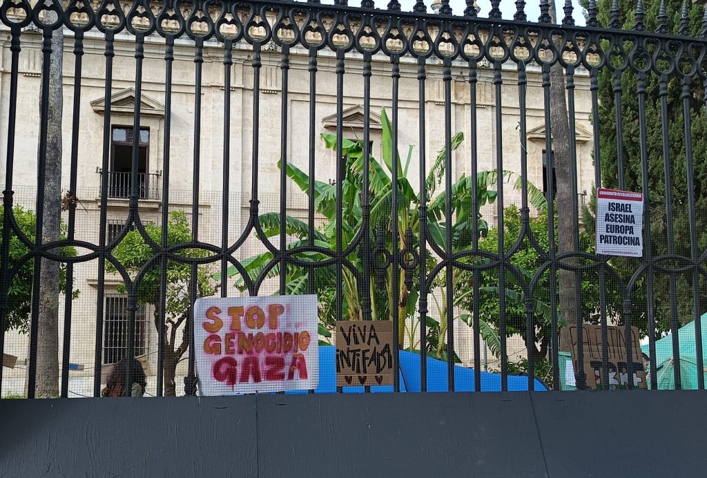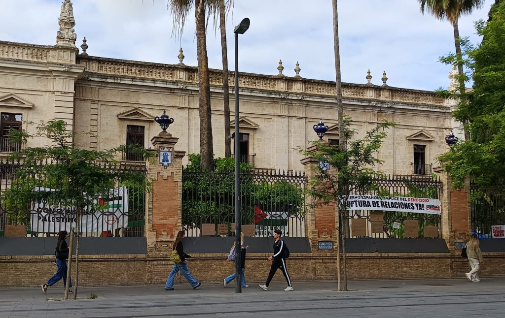 Sobre su objetivo, David insiste en que “Se rompan todos los convenios con las universidades. Los convenios que sostiene la Universidad de Sevilla, por ejemplo, con el Banco Santander o con empresas como Navantia, que colaboran activamente y cofinancian el genocidio que está sucediendo en Gaza. Exigimos al rector de la Universidad de Sevilla que lo rompa de inmediato. Y también realizamos reivindicaciones ya a nivel estatal y a nivel político, al Estado español para que se ejercite una ruptura inmediata de relaciones con el Estado de Israel, una expulsión de la embajadora de Israel del territorio español y, desde luego, la abolición de todas las leyes que permiten la represión del movimiento estudiantil en defensa de Palestina, como por ejemplo la ley de convivencia universitaria, la famosa LCU, la LOSU también, o la ley mordaza.”