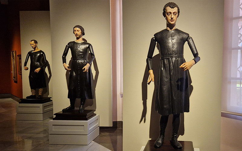 La exhibición de estas tres tallas articuladas, sin telas sobrepuestas, permite apreciar su sistema constructivo, tan frecuente en el arte barroco y que en la mayoría de las ocasiones queda oculto. Los tres mártires, que llevan el hábito de los jesuitas, presentan brazos articulados en hombros, codos y muñecas dejando claro que irían recubiertos posteriormente con vestidos que, como en el caso de San Pablo Miki, cubren la unión artificial de la cabeza al cuerpo o los ensambles de las manos a los brazos.
