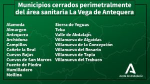 Alameda, Almargen, Antequera, Archidona, Campillos, Cañete la Real, Cuevas Bajas, Cuevas de San Marcos, Fuente de Piedra, Humilladero, Mollina, Sierra de Yeguas, Teba, Valle de Abdalajís, Villanueva de Algaidas, Villanueva de la Concepción, Villanueva del Rosario, Villanueva de Tapia y Villanueva del Trabuco, en la provincia de Málaga.