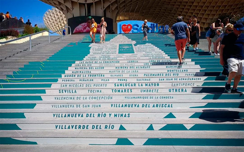 Las Setas de la Encarnación, una estructura moderna y emblemática en el corazón de Sevilla, se han convertido en un punto de referencia para turistas y locales. Aprovechando esta popularidad, la Diputación de Sevilla ha lanzado una iniciativa para resaltar las contribuciones de toda la provincia al atractivo turístico de la capital andaluza. En las escaleras de las Setas de la Encarnación, se ha creado un mosaico que presenta la silueta de la provincia de Sevilla, con los nombres de sus municipios distribuidos en cada escalón.