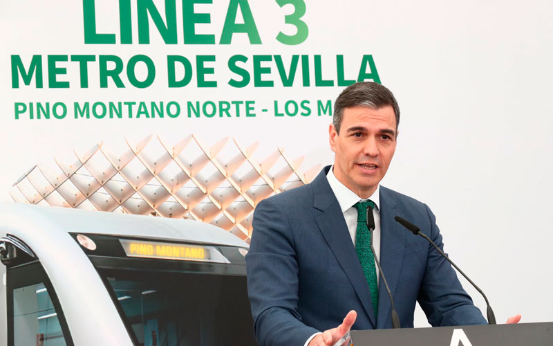El presidente del Gobierno, Pedro Sánchez, ha viajado a Sevilla, donde ha presidido el acto de inicio de las obras de la línea 3 Norte del Metro de Sevilla, cofinanciada por el Gobierno de España con 650 millones de euros que refuerzan la apuesta transformadora del Ejecutivo por las infraestructuras públicas en Sevilla y Andalucía.