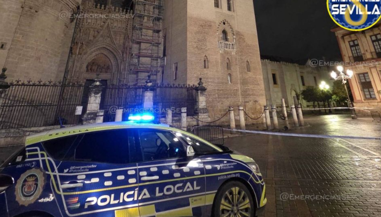 Se presupone que, debido al viento de la borrasca Leonardo, causó una presión tan fuerte incapaz de aguantar las soldaduras. Los agentes de la Policía Local mantienen acotada una zona de la Plaza Virgen de los Reyes en la zona del suceso.