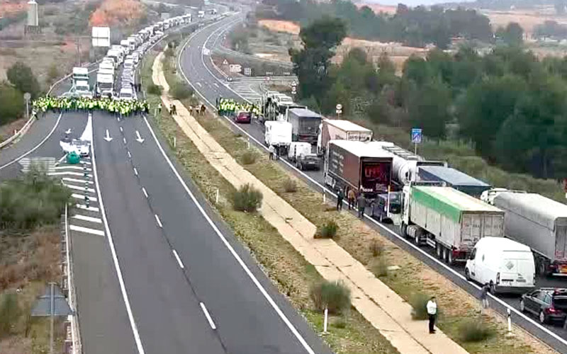 Durante la mañana de este jueves, decenas de agricultores, convocados por redes sociales y sin autorización oficial de las protestas, han vuelto a cortar carreteras para llamar la atención sobre lo que denominan «abandono» del campo, el exceso de burocracia y la falta de agua por la sequía.