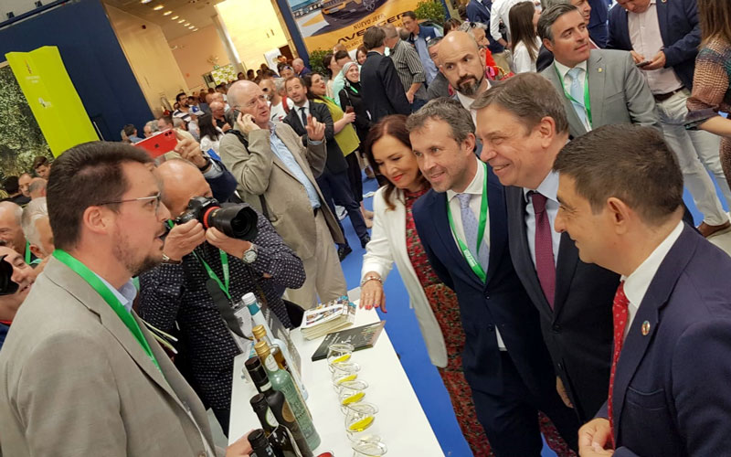 Además de intervenir en este acto, el presidente de la Administración provincial ha acompañado al ministro de Agricultura, Pesca y Alimentación, Luis Planas, durante su visita a Expoliva 2023, en la que ha visitado el estand de la Diputación de Jaén en esta feria, un espacio en el que tienen especial protagonismo los aceites de oliva virgen extra “Jaén Selección” 2023.