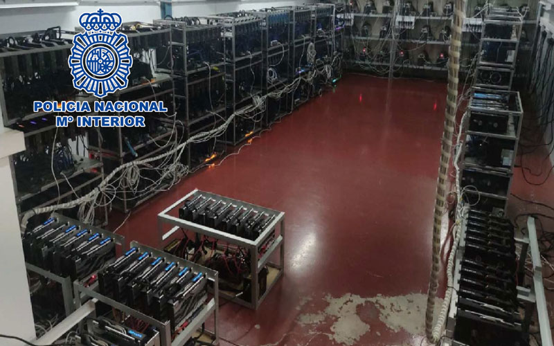 En el interior de una de las naves en la calle Extremadura, la Policía Nacional halló un sofisticado sistema de creación de criptoactivos, y realización de apuntes informáticos asociados a las transacciones de estos criptoactivos, lo que comúnmente se denomina granja para el minado de criptomonedas.